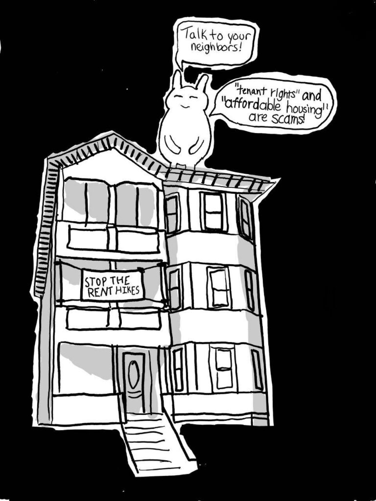 New tenant or new to organizing? This zine also pushes people from simply thinking of policy advocacy to solve the so called “housing crisis”. Even if you don’t feel like you have any problems now, building relationships with your neighbors lays the foundation for mutual aid, community defense and more.